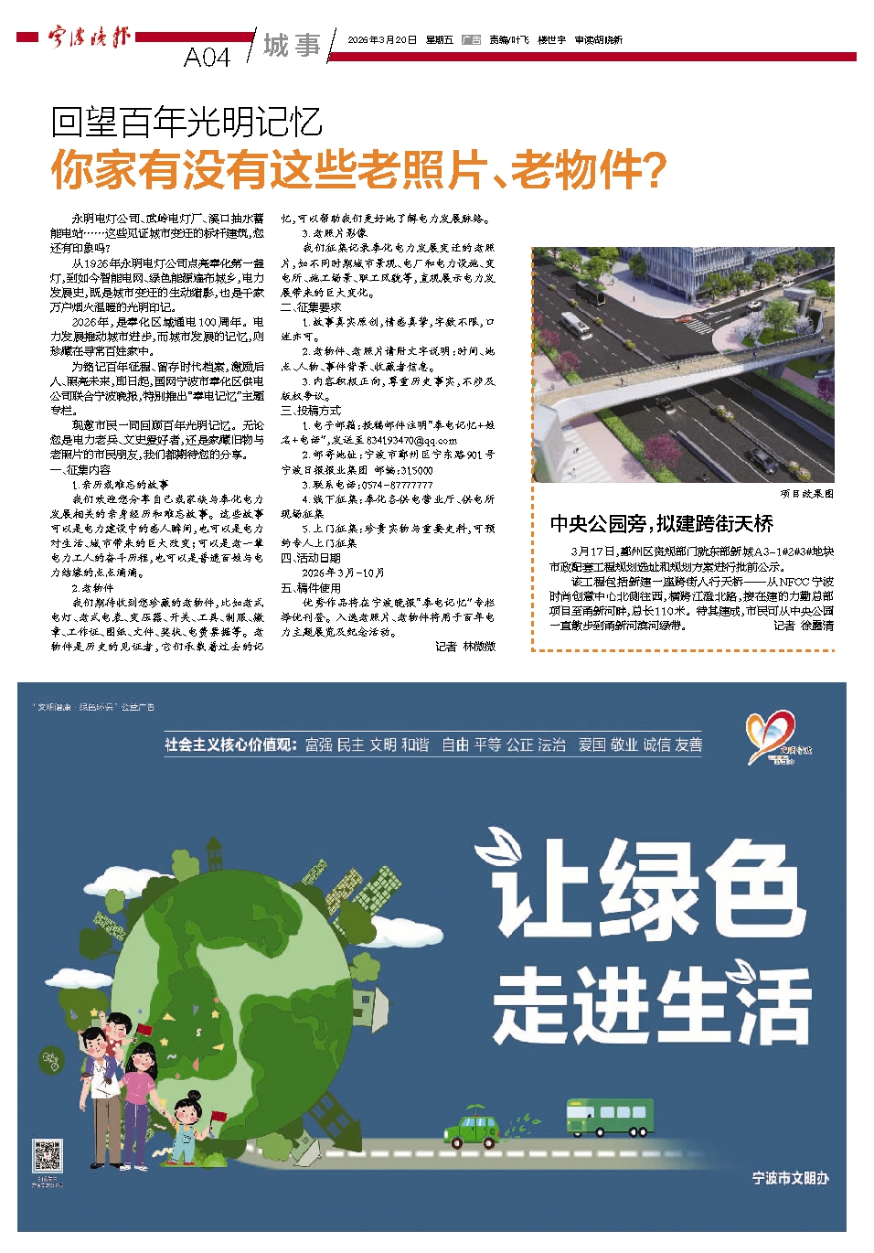 优秀作品将在宁波晚报“奉电记忆”专栏择优刊登。入选老照片、老物件将用于百年电力主题展览及纪念活动。