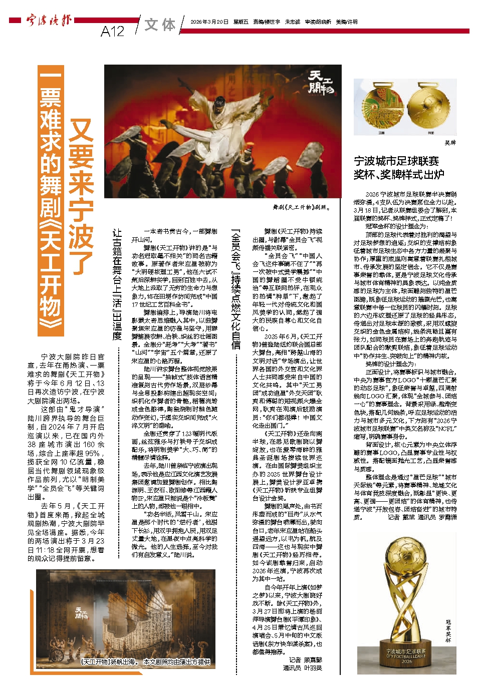去年5月,《天工开物》首度来甬,掀起全城观剧热潮,宁波大剧院罕见全场满座。据悉,今年的两场演出将于3月23日11:18全网开票,想看的观众记得提前留意。