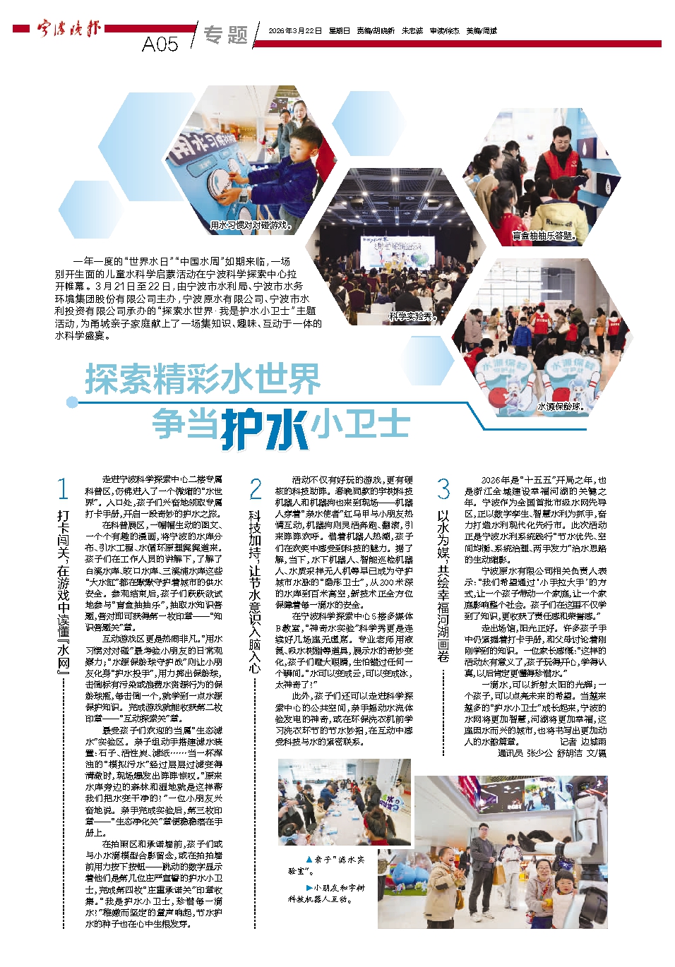 一滴水,可以折射太阳的光辉;一个孩子,可以点亮未来的希望。当越来越多的“护水小卫士”成长起来,宁波的水网将更加智慧,河湖将更加幸福,这座因水而兴的城市,也将书写出更加动人的水韵篇章。记者 边城雨