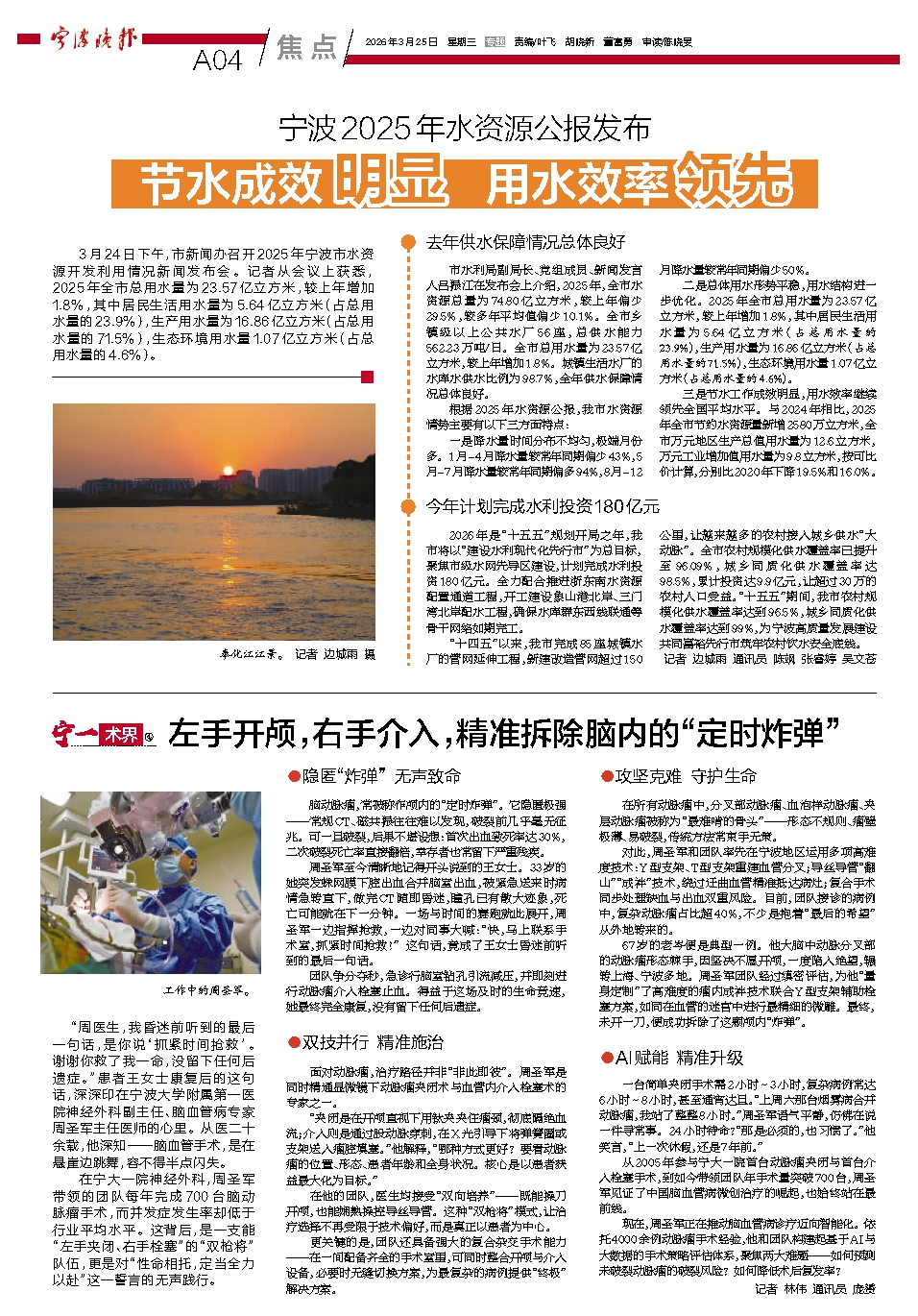 在宁大一院神经外科,周圣军带领的团队每年完成700台脑动脉瘤手术,而并发症发生率却低于行业平均水平。这背后,是一支能“左手夹闭、右手栓塞”的“双枪将”队伍,更是对“性命相托,定当全力以赴”这一誓言的无声践行。