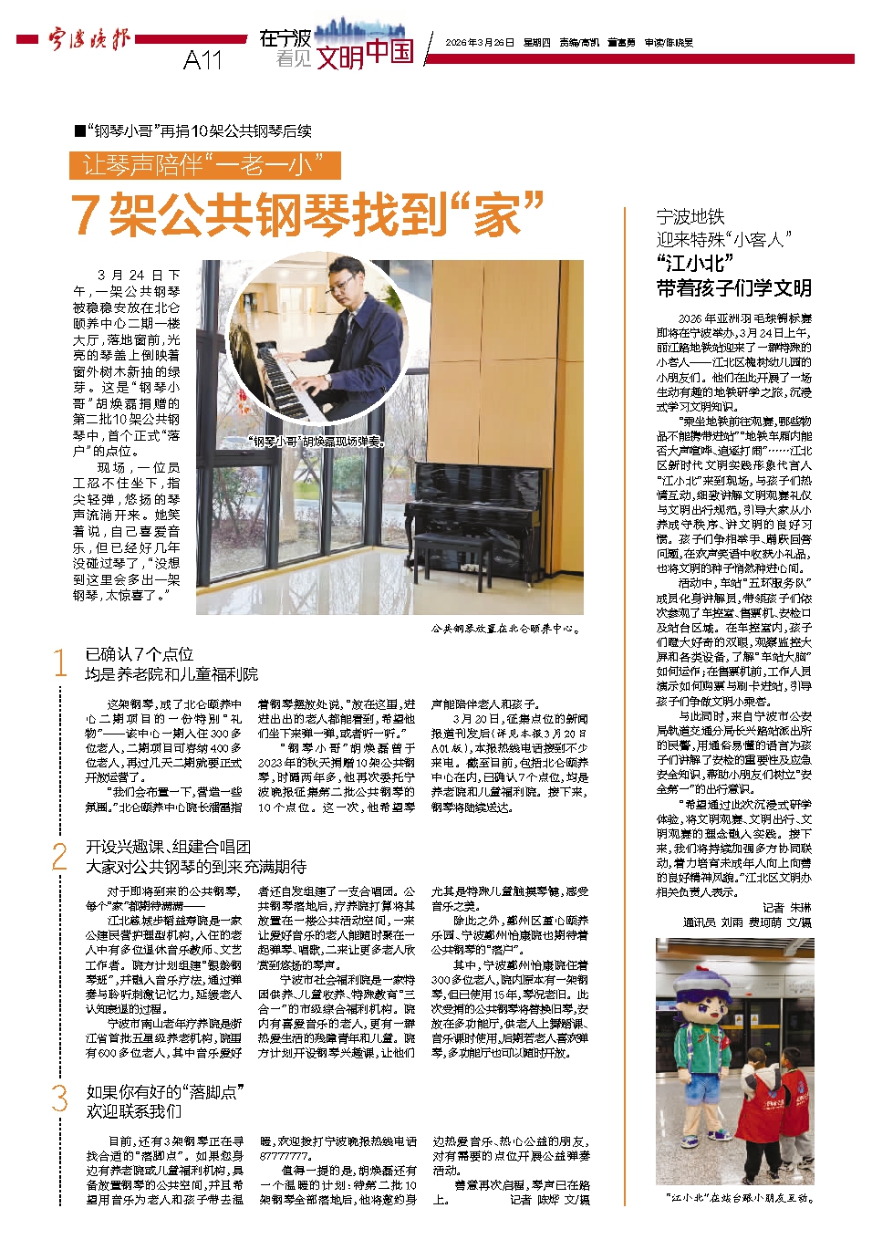 2026年亚洲羽毛球锦标赛即将在宁波举办,3月24日上午,丽江路地铁站迎来了一群特殊的小客人——江北区槐树幼儿园的小朋友们。他们在此开展了一场生动有趣的地铁研学之旅,沉浸式学习文明知识。