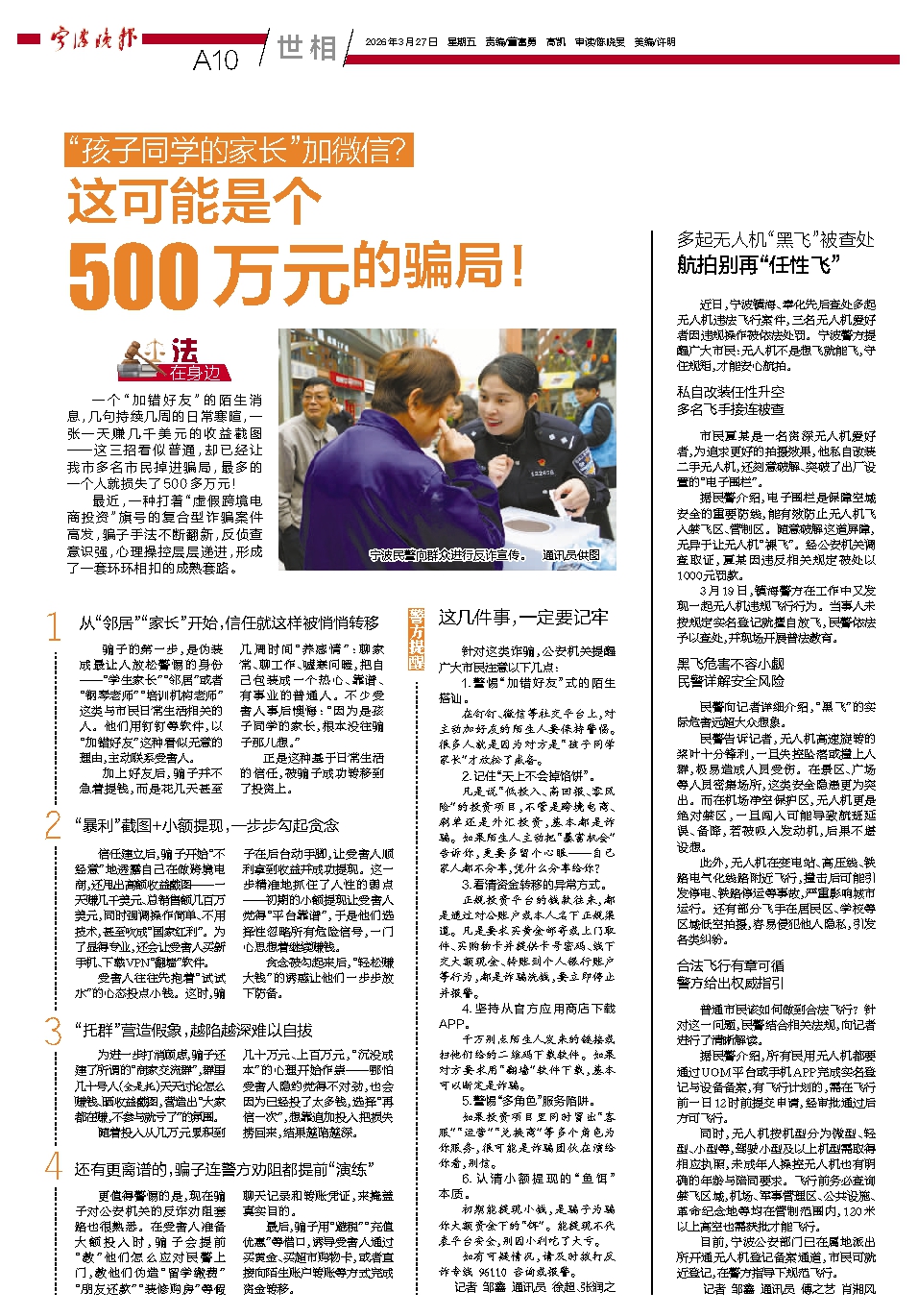 目前,宁波公安部门已在属地派出所开通无人机登记备案通道,市民可就近登记,在警方指导下规范飞行。