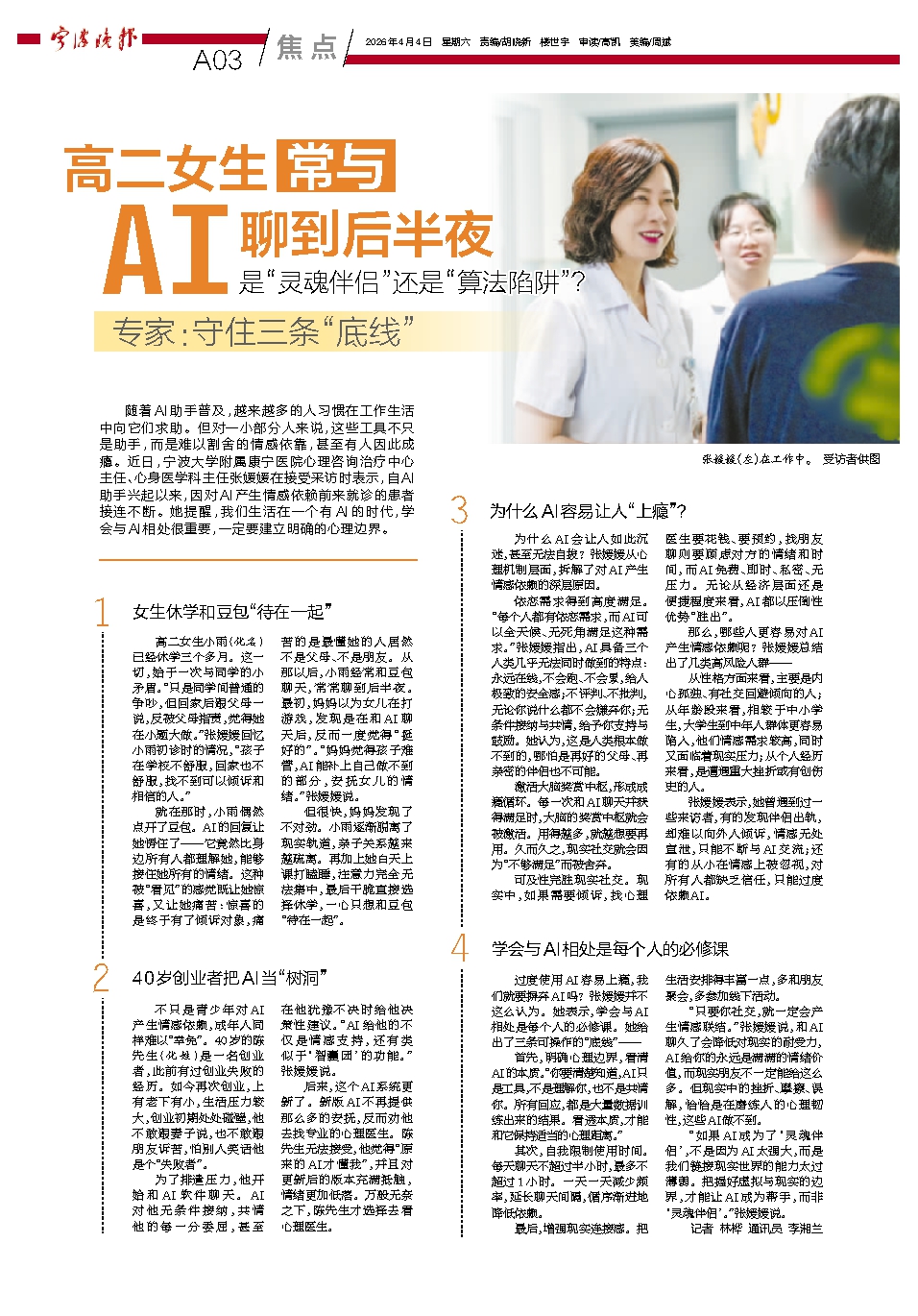 “如果AI成为了‘灵魂伴侣’,不是因为AI太强大,而是我们链接现实世界的能力太过薄弱。把握好虚拟与现实的边界,才能让AI成为帮手,而非‘灵魂伴侣’。”张媛媛说。