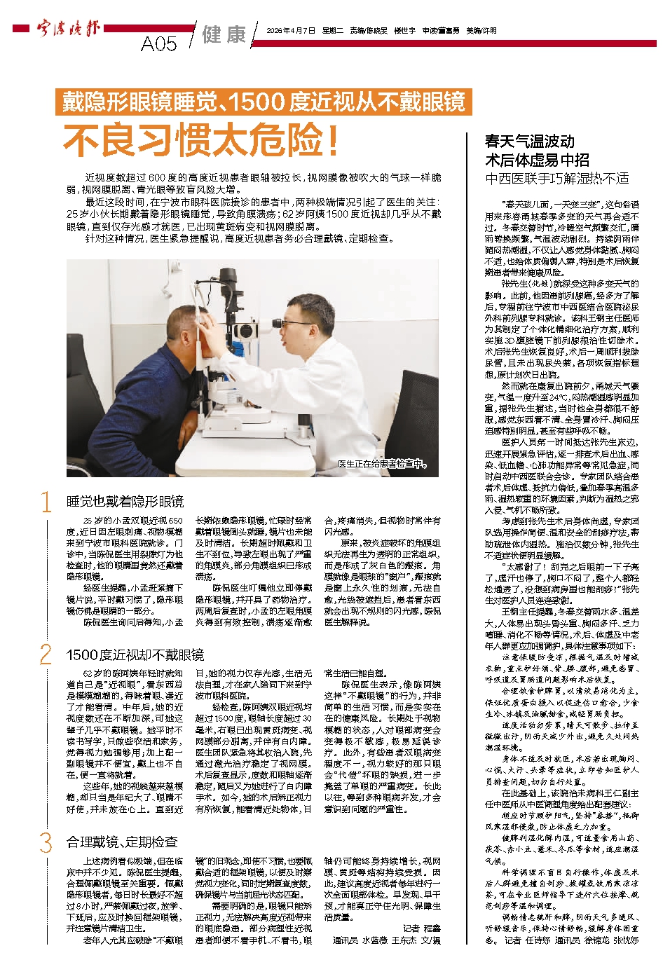 “春天孩儿面,一天变三变”,这句俗语用来形容甬城春季多变的天气再合适不过。冬春交替时节,冷暖空气频繁交汇,晴雨转换频繁,气温波动剧烈。持续阴雨伴随闷热潮湿,不仅让人感觉身体黏腻、胸闷不适,也给体质偏弱人群,特别是术后恢复期患者带来健康风险。