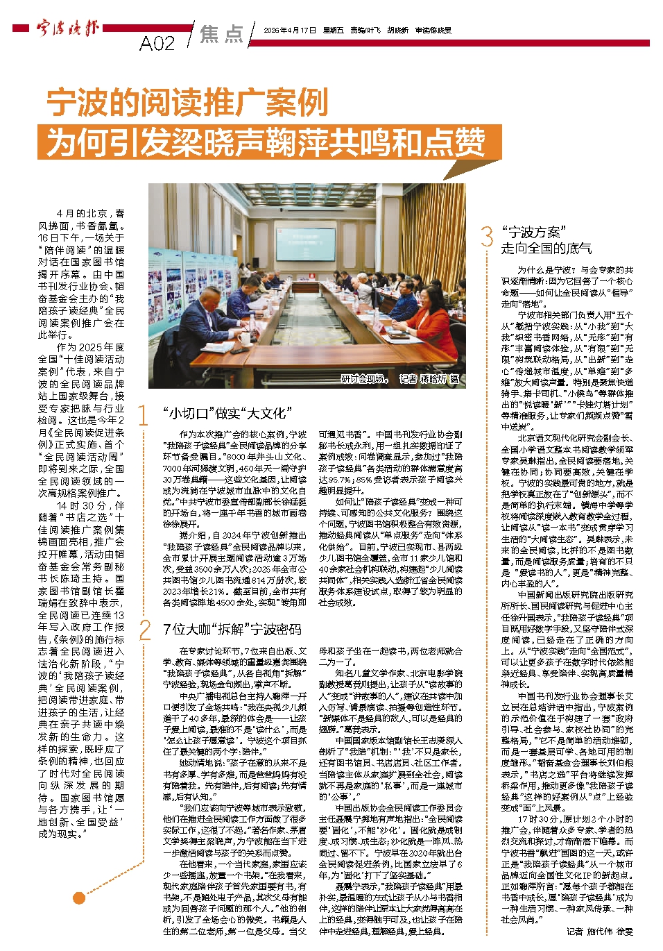 为什么是宁波?与会专家的共识逐渐清晰:因为它回答了一个核心命题——如何让全民阅读从“倡导”走向“落地”。