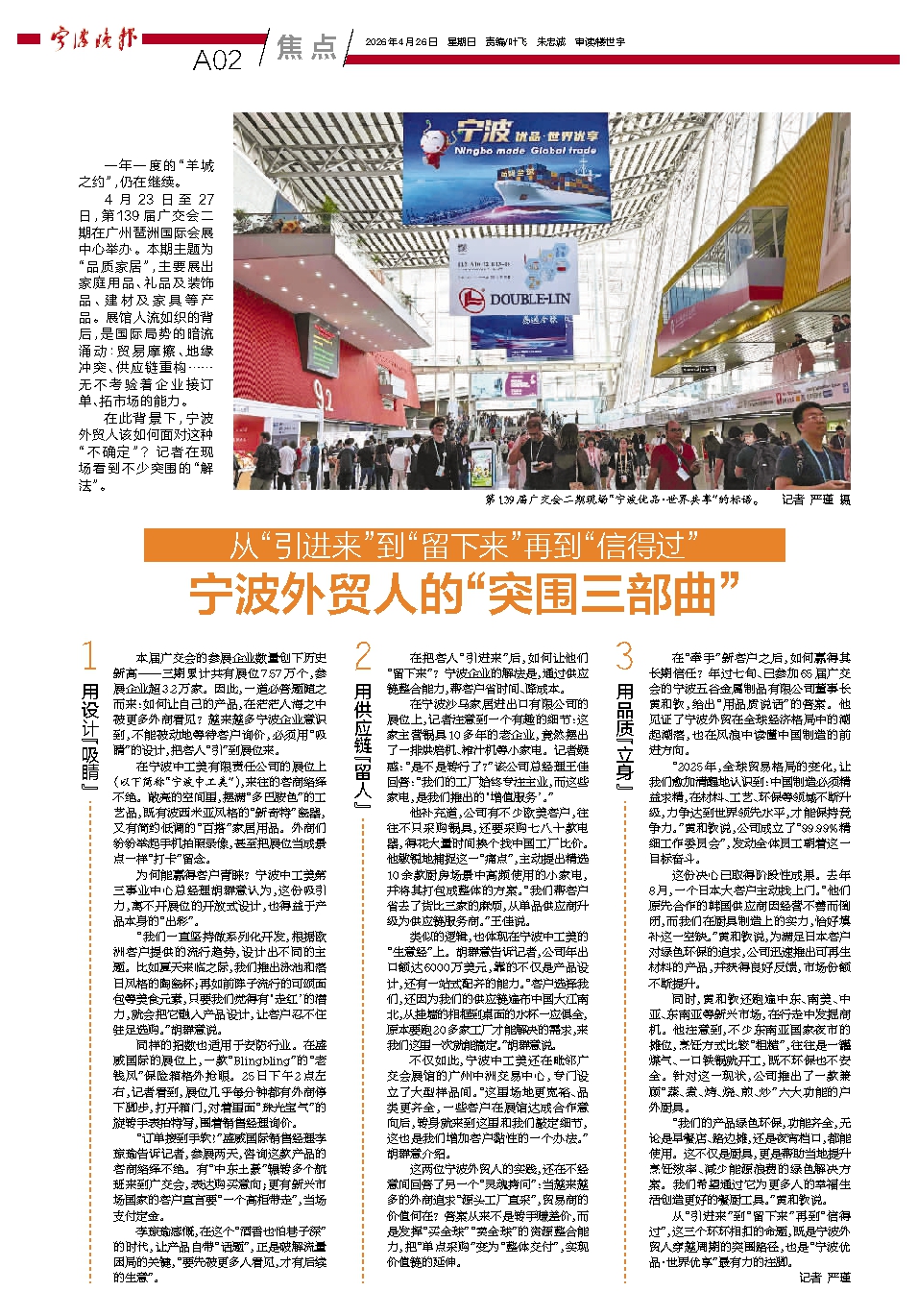 从“引进来”到“留下来”再到“信得过”,这三个环环相扣的命题,既是宁波外贸人穿越周期的突围路径,也是“宁波优品·世界优享”最有力的注脚。