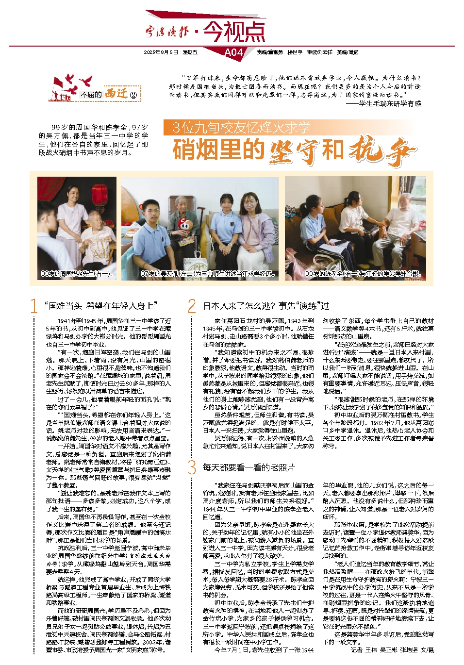 3位九旬校友忆烽火求学 硝烟里的坚守和抗争