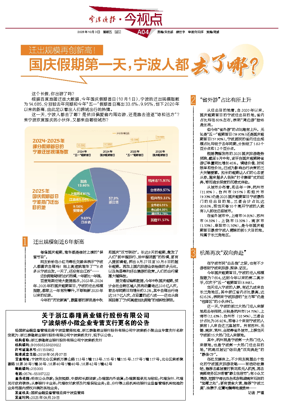 关于浙江泰隆商业银行股份有限公司 宁波柴桥小微企业专营支行更名的公告