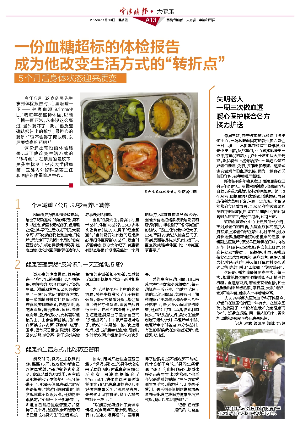 一份血糖超标的体检报告 成为他改变生活方式的“转折点”