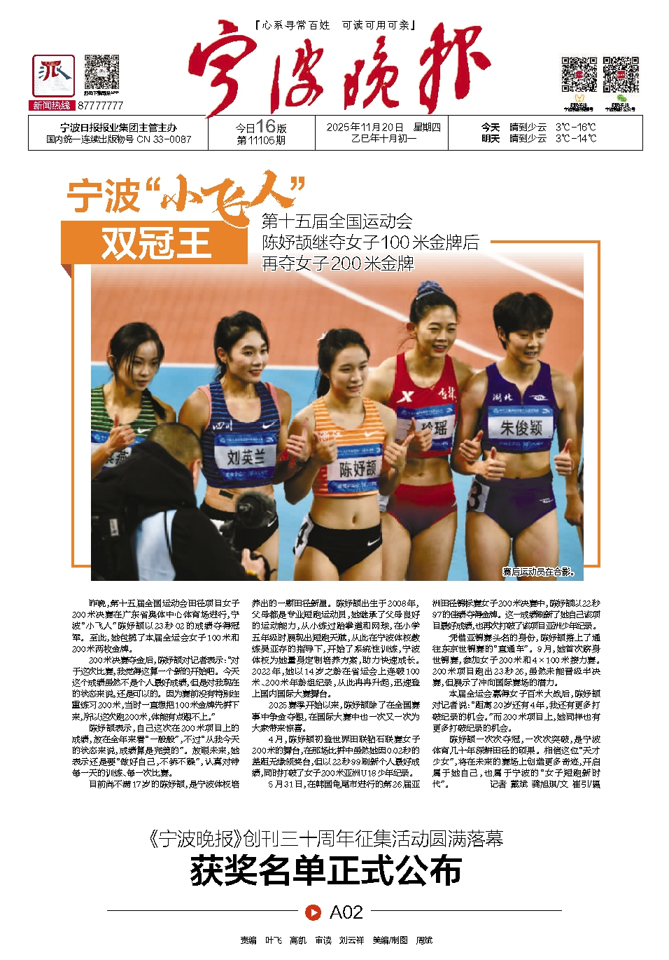 第十五届全国运动会 陈妤颉继夺女子100米金牌后 再夺女子200米金牌