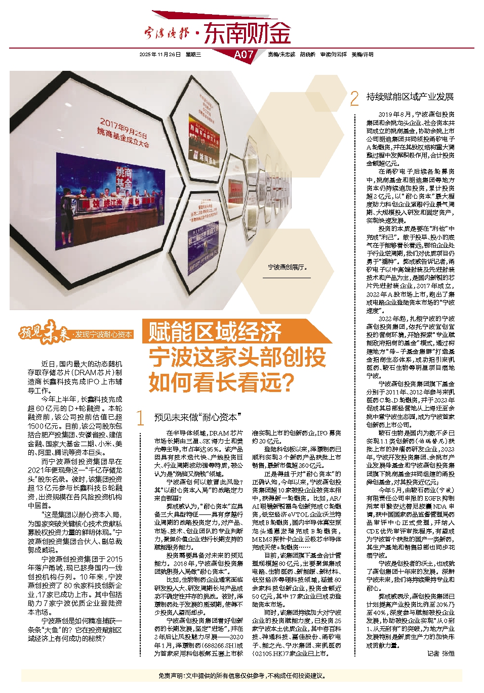 赋能区域经济 宁波这家头部创投如何看长看远?