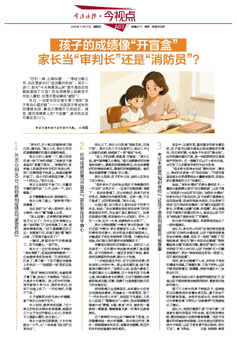 孩子的成绩像“开盲盒” 家长当“审判长”还是“消防员”?