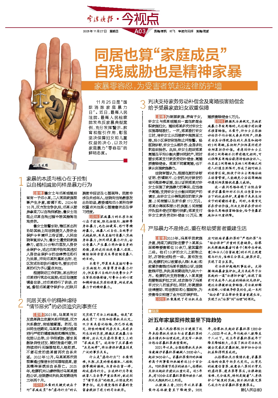 同居也算“家庭成员” 自残威胁也是精神家暴