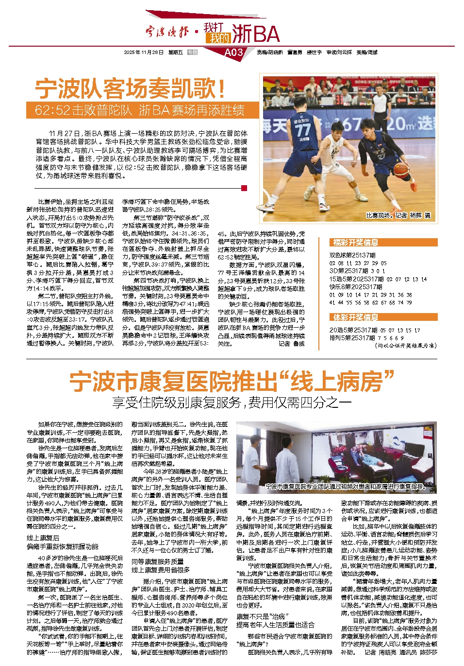 宁波市康复医院推出“线上病房” 享受住院级别康复服务,费用仅需四分之一