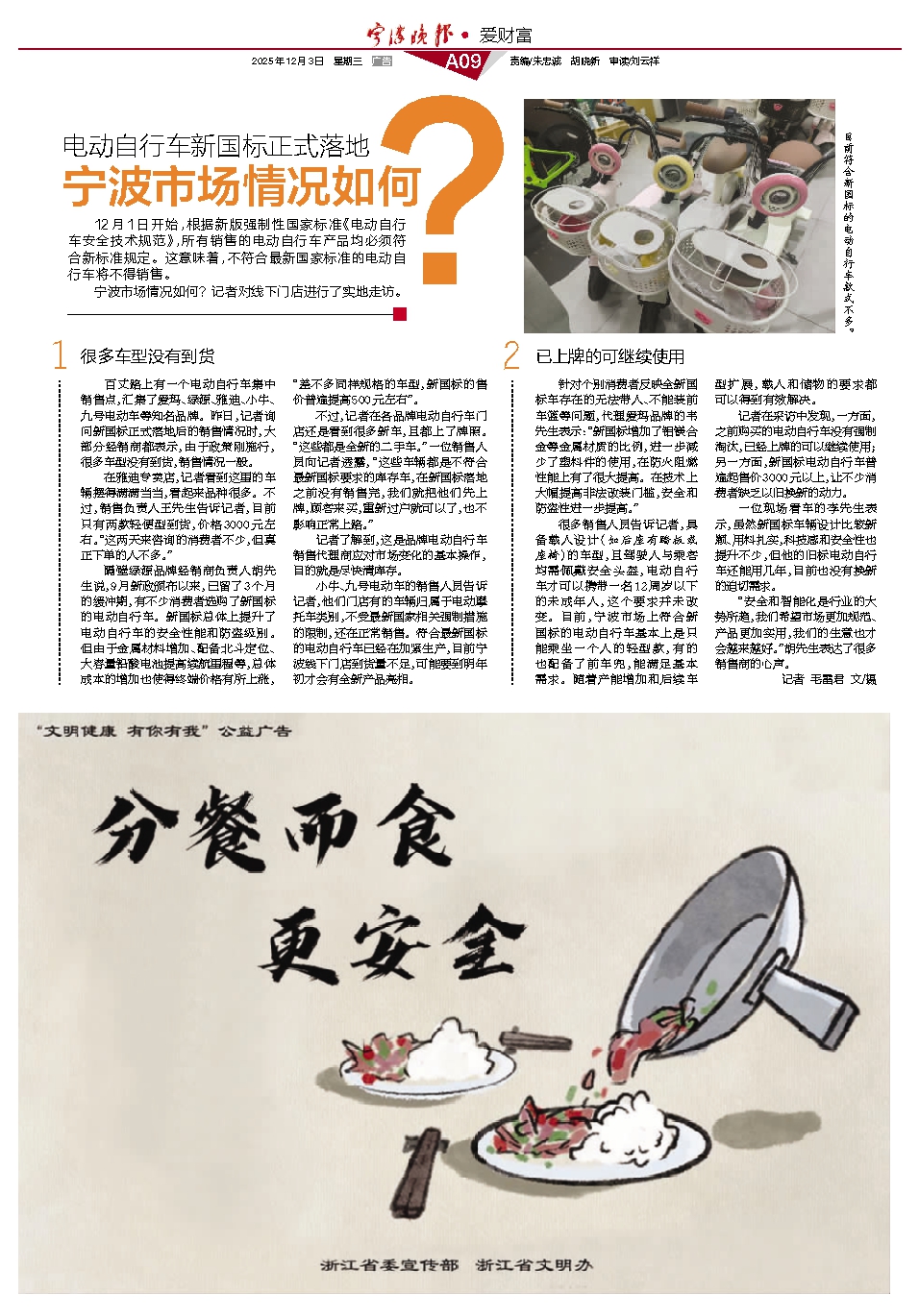 电动自行车新国标正式落地 宁波市场情况如何