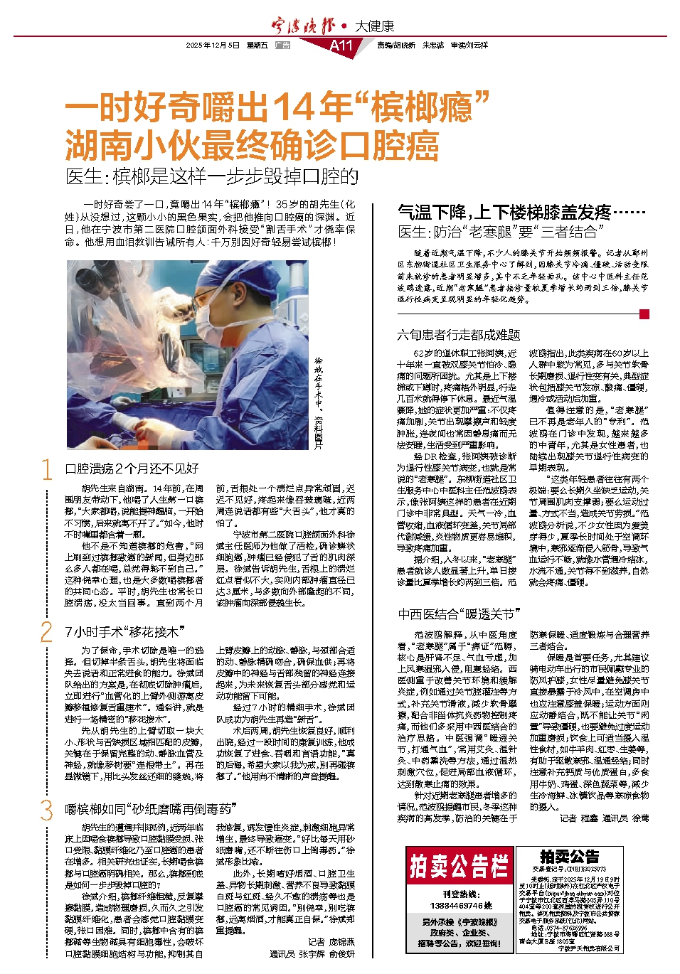 一时好奇嚼出14年“槟榔瘾” 湖南小伙最终确诊口腔癌