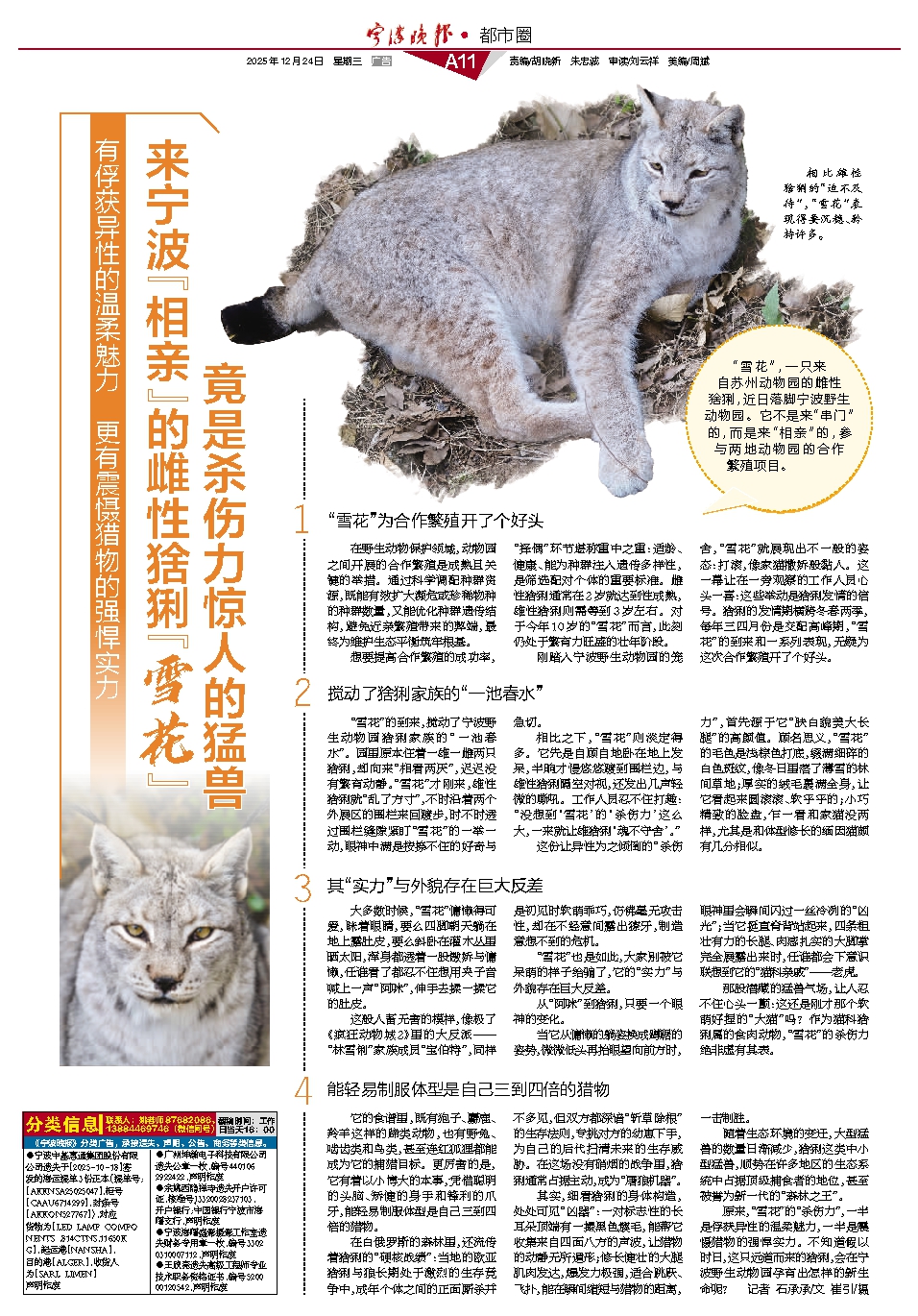 来宁波“相亲”的雌性猞猁“雪花” 竟是杀伤力惊人的猛兽
