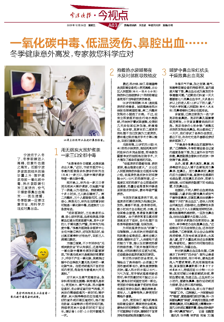 一氧化碳中毒、低温烫伤、鼻腔出血……