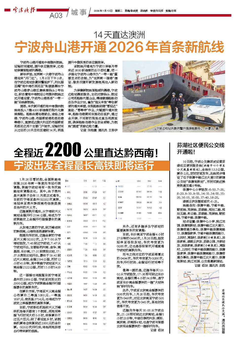 宁波舟山港开通2026年首条新航线