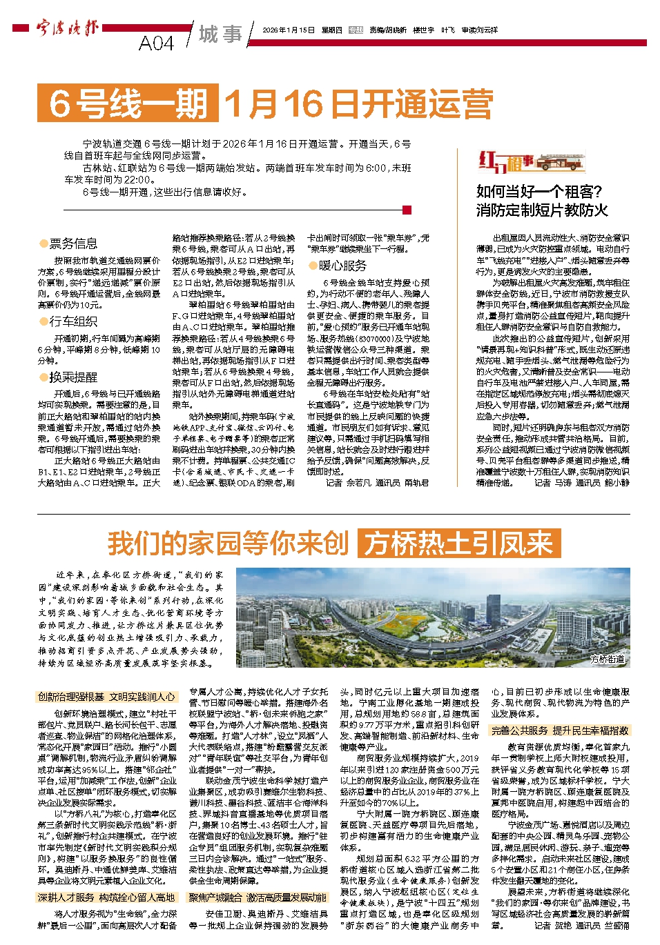 6号线一期 1月16日开通运营