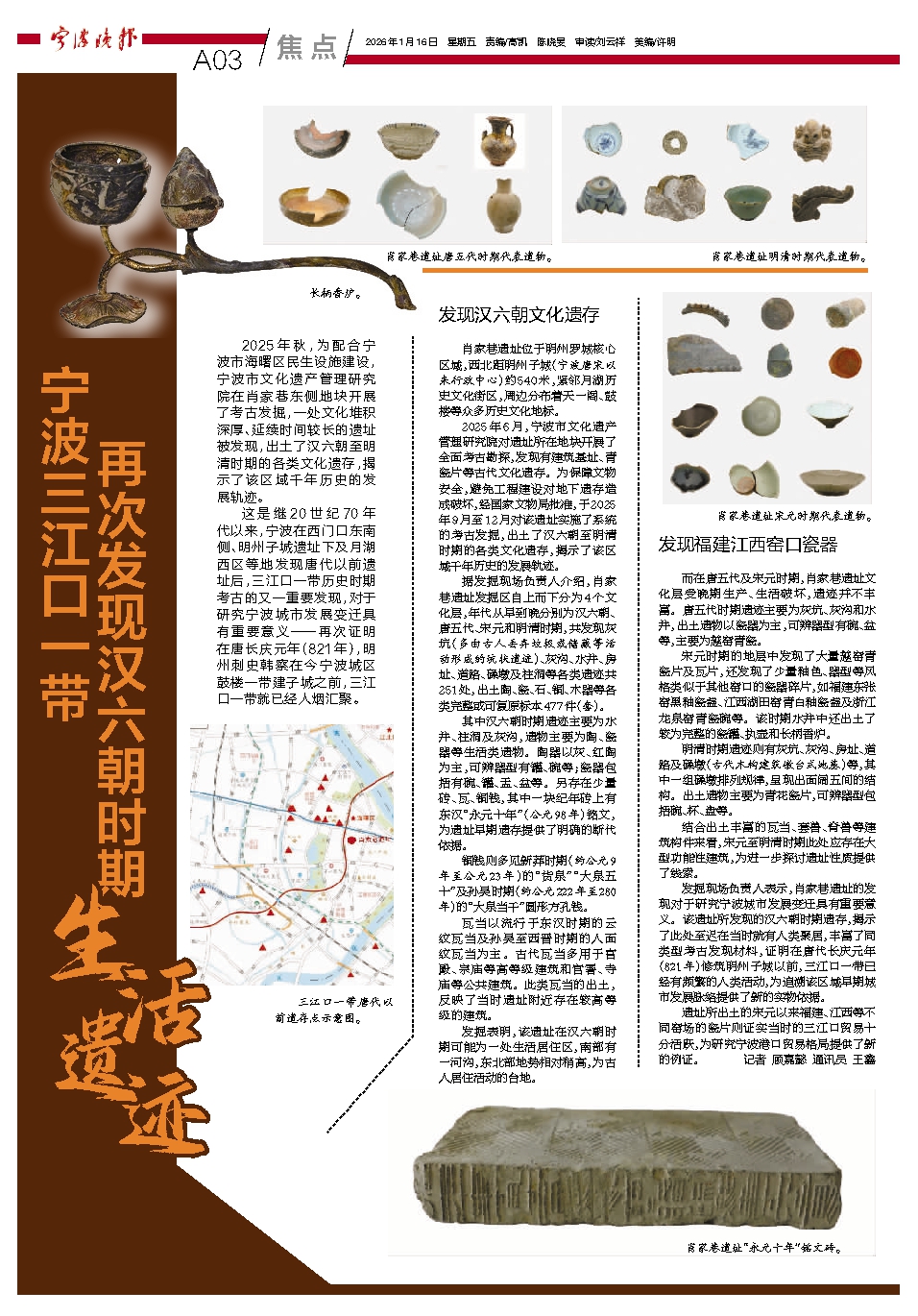 宁波三江口一带 再次发现汉六朝时期生活遗迹
