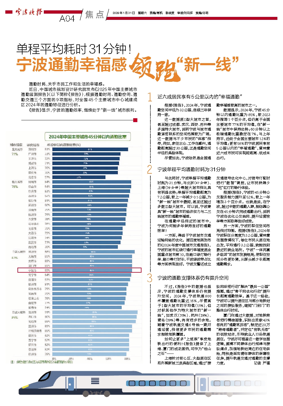 宁波通勤幸福感领跑“新一线”