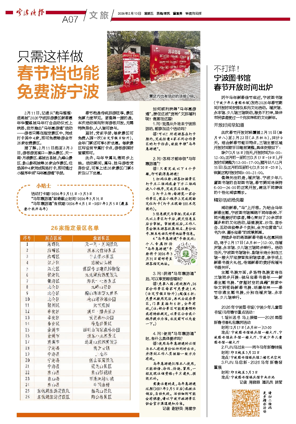 春节档也能 免费游宁波