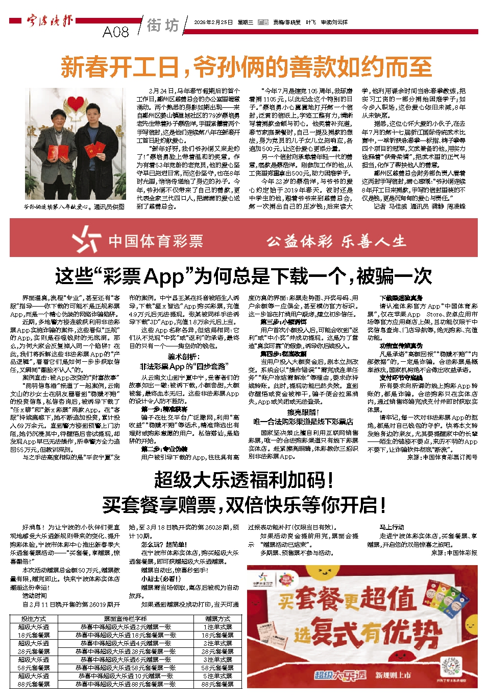 新春开工日,爷孙俩的善款如约而至