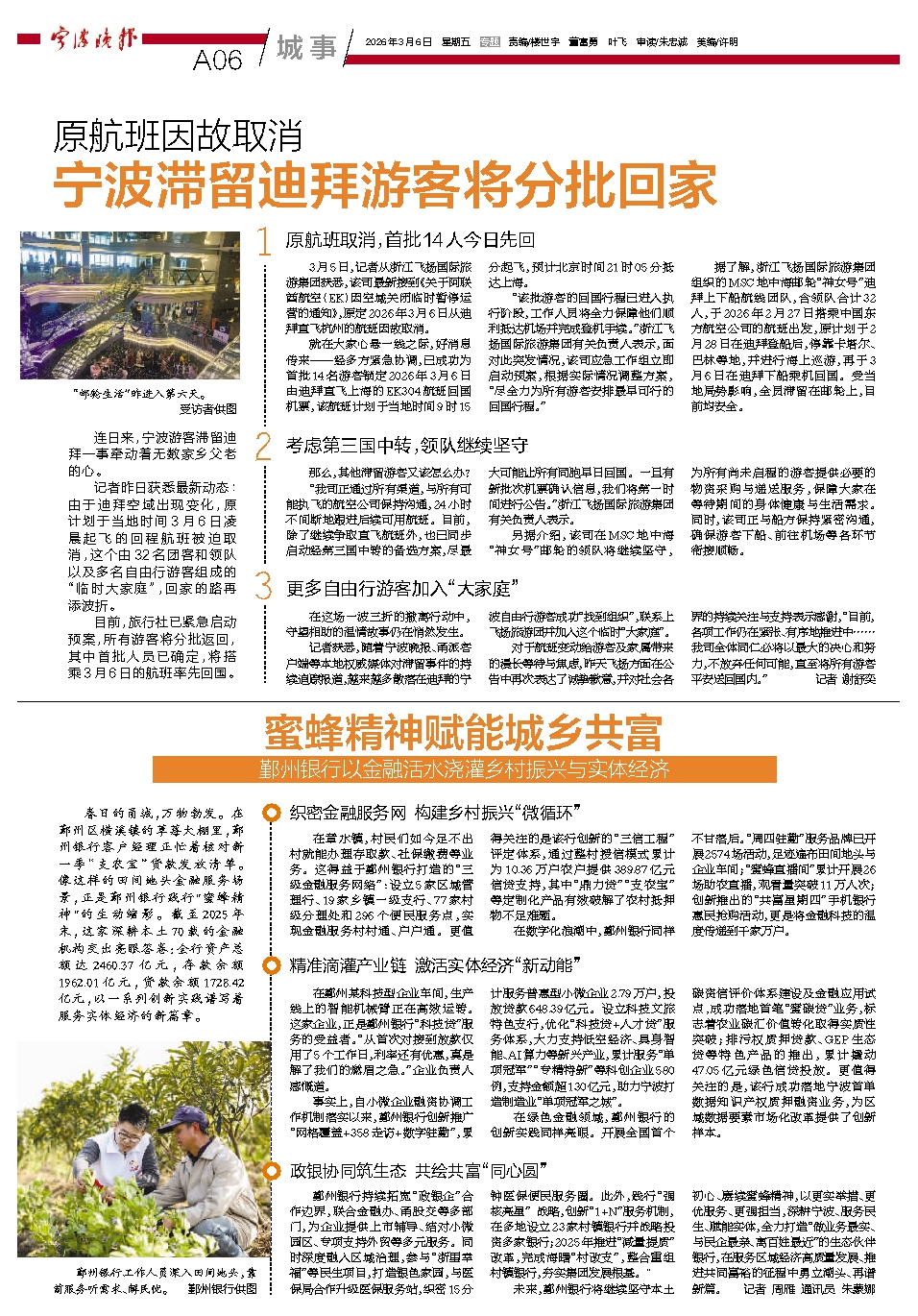 宁波滞留迪拜游客将分批回家