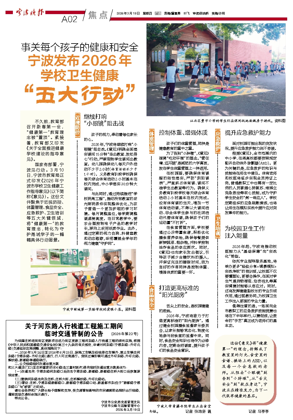 宁波发布2026年 学校卫生健康“五大行动”