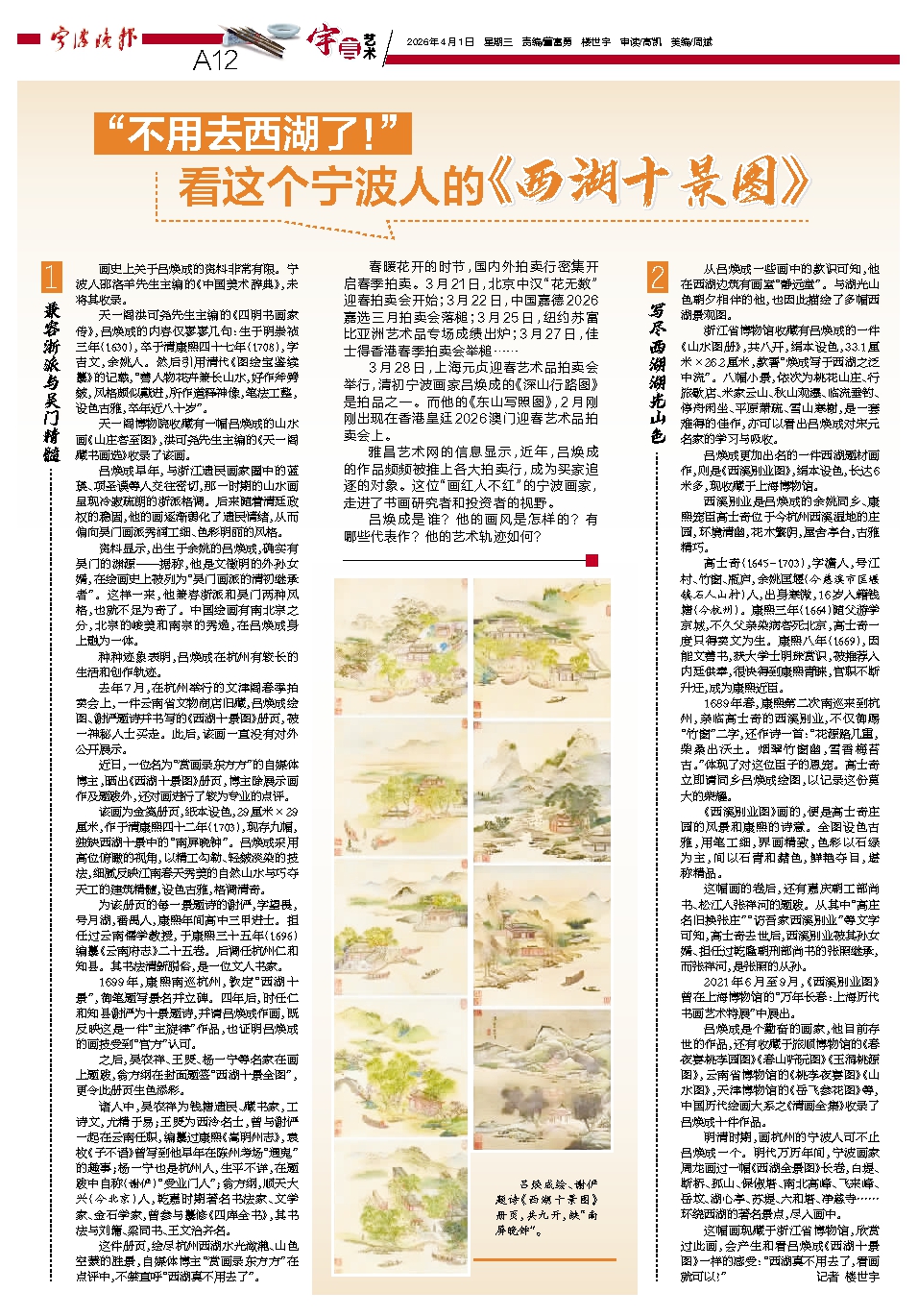 看这个宁波人的《西湖十景图》
