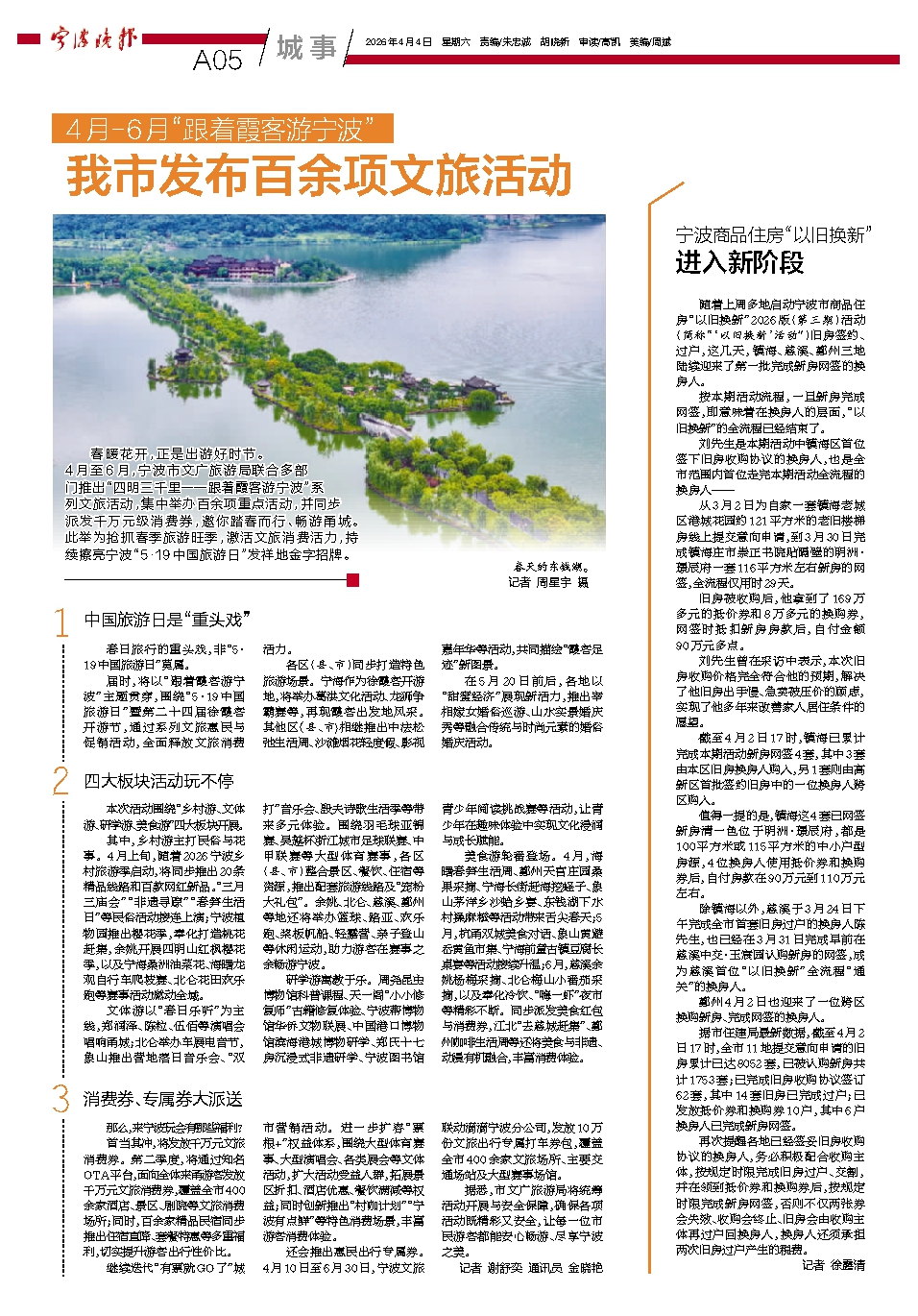 4月-6月“跟着霞客游宁波” 我市发布百余项文旅活动
