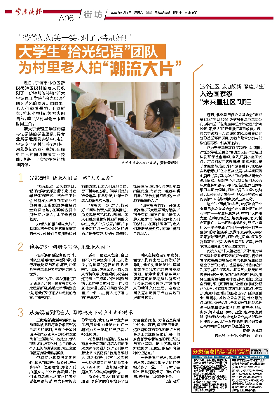 大学生“拾光纪语”团队 为村里老人拍“潮流大片”