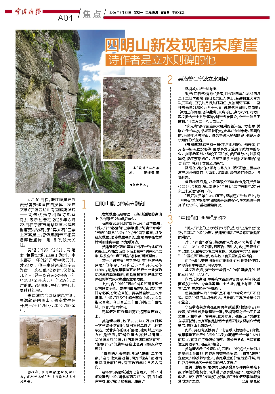 四明山新发现南宋摩崖