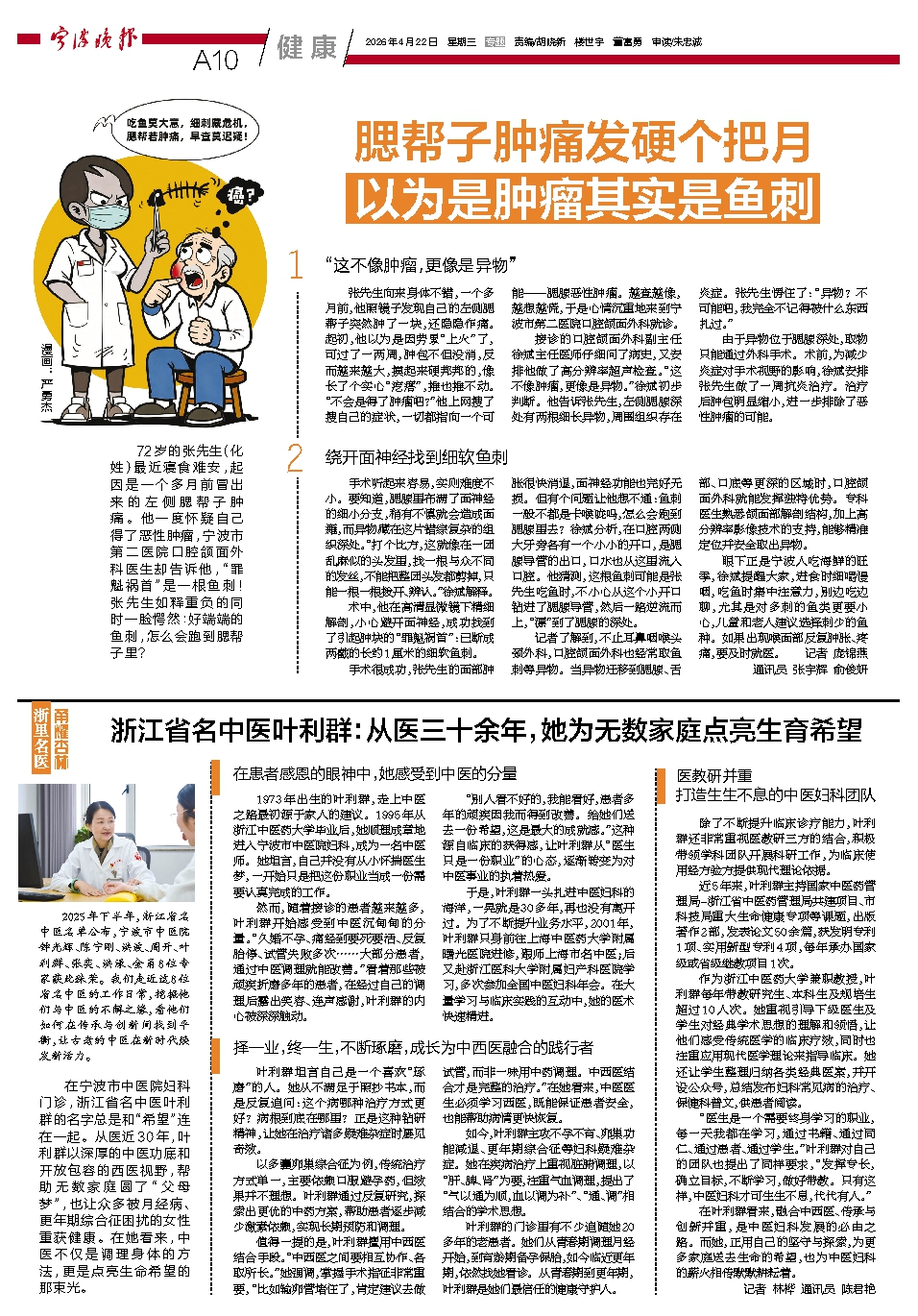 腮帮子肿痛发硬个把月 以为是肿瘤其实是鱼刺