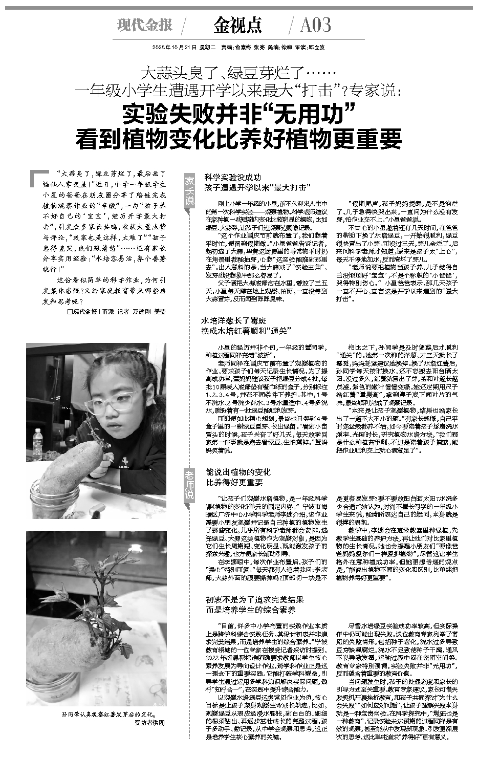 当问题发生时,孩子的处理态度和家长的引导方式至关重要。教育专家建议,家长可借失败契机开展挫折教育,和孩子共同探讨“为什么会失败”“如何应对问题”,让孩子理解失败本身就是一种宝贵体验。在科学探究中,“瑕疵也是一种教育”,记录实验未达预期的过程同样是有效的观察,甚至能从中发现新现象、引发更深层次的思考,这比单纯追求“养得好”更有意义。