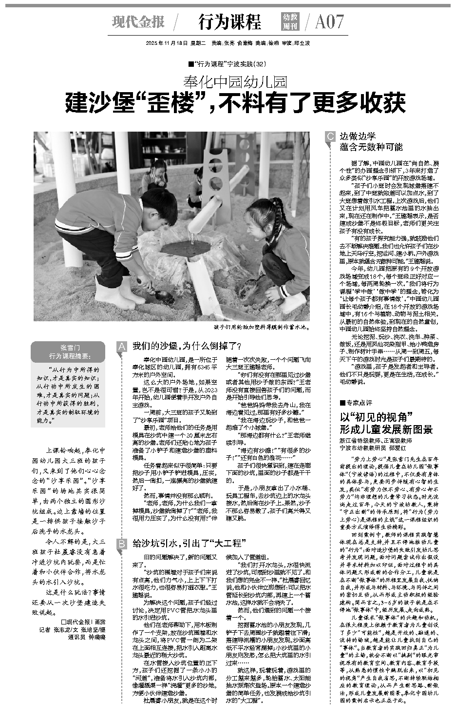 据了解,中园幼儿园在“尚自然、展个性”的办园理念引领下,3年来打造了众多类似“沙享乐园”的开放游戏场域。