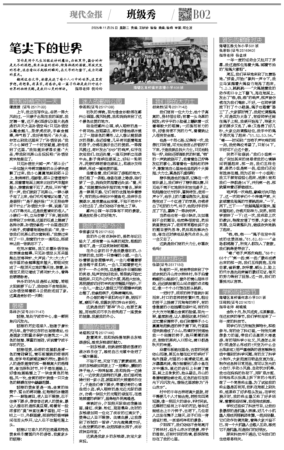 翻阅这些文字,就像走进了每个人心中的世界。这里有梦想,有想象,有真实,有感动。每一篇习作都是我们对这个世界的独特见解,是我们心灵的倾诉。指导老师 倪玲玲