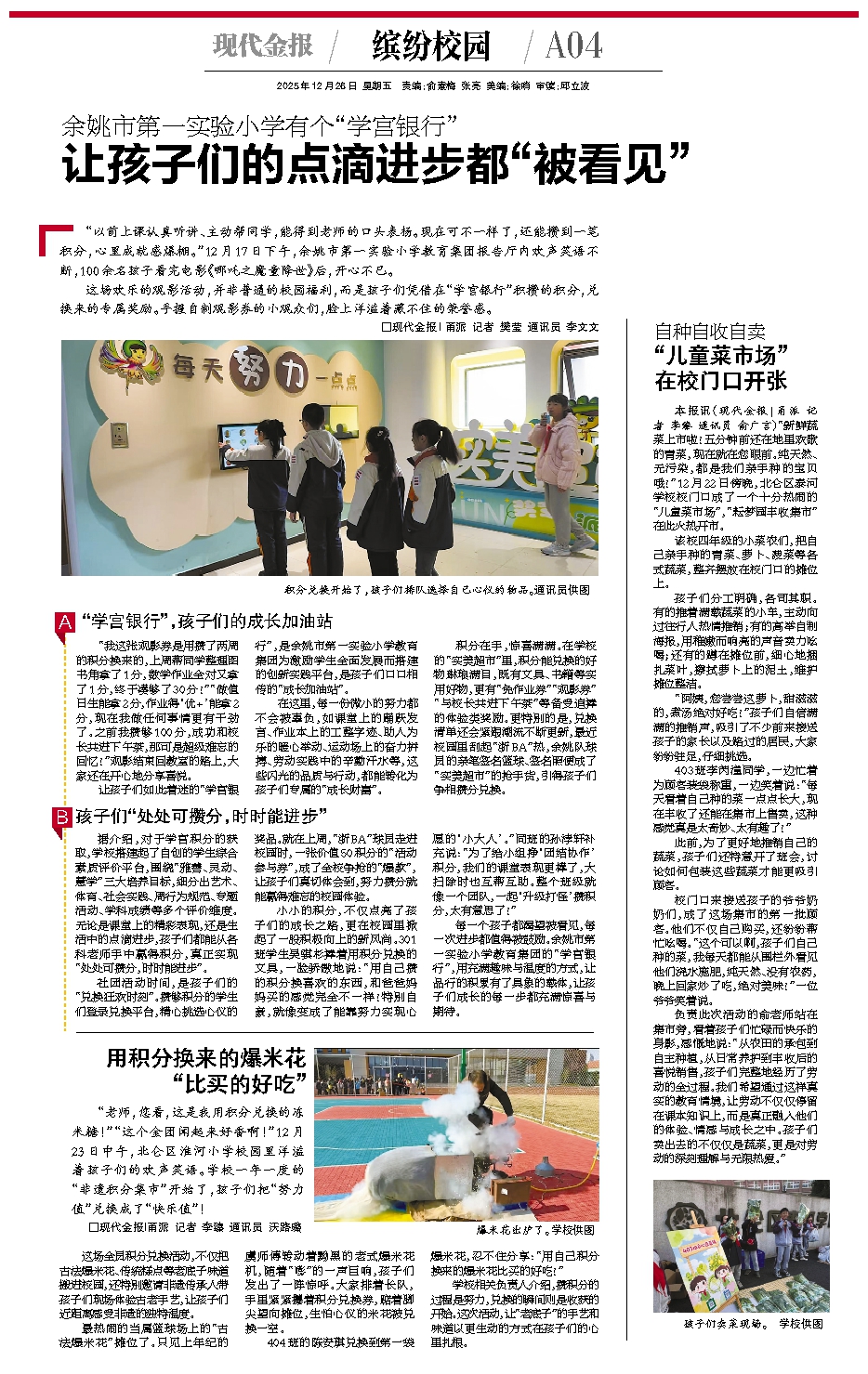 在这里,每一份微小的努力都不会被辜负,如课堂上的踊跃发言、作业本上的工整字迹、助人为乐的暖心举动、运动场上的奋力拼搏、劳动实践中的辛勤汗水等,这些闪光的品质与行动,都能转化为孩子们专属的“成长财富”。