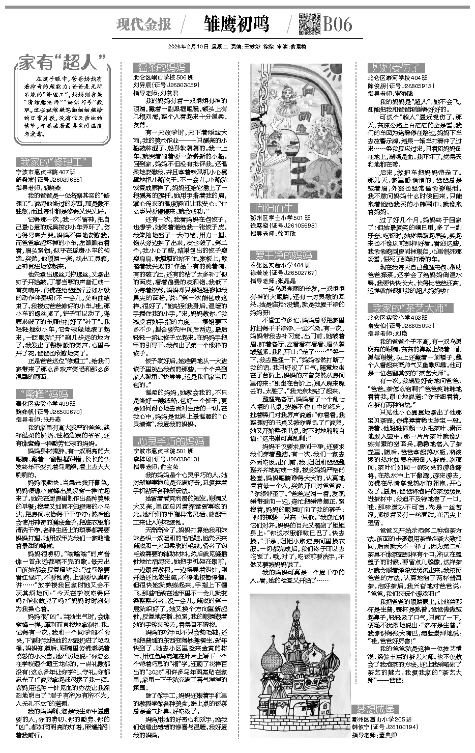 我的妈妈是“超人”。她不会飞,却能把我和爸爸照顾得好好的。