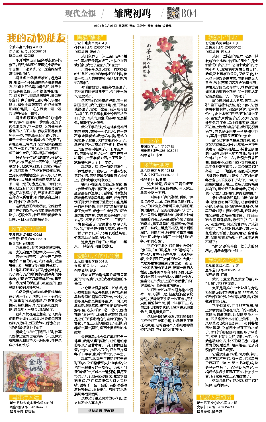 福多多不仅是我的宠物,还是我的朋友。每天放学一回到家,书包还没放下,我就冲到笼子边喊:“福多多,我回来啦!”它好像听得懂似的,立刻从纸棉里钻出来,两只小爪子趴在笼子上,黑溜溜的眼睛望着我,胡须一翘一翘的,像是在说:“你好!快来和我玩呀!”这个时候,我就会在它旁边开启跳绳打卡,而福多多总是趴在旁边认真看着,有时候还会上蹿下跳,好像在为我欢呼。