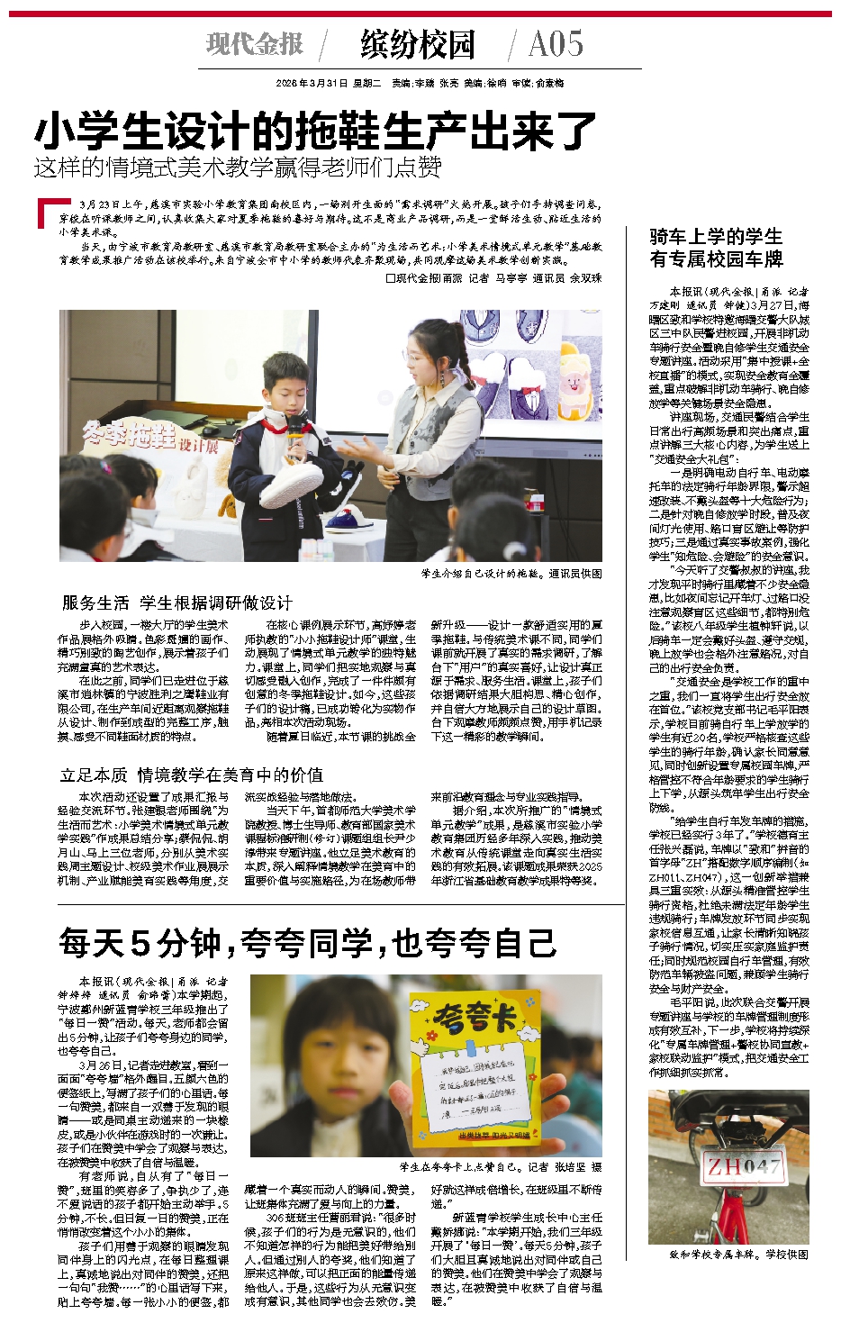 3月23日上午,慈溪市实验小学教育集团南校区内,一场别开生面的“需求调研”火热开展。孩子们手持调查问卷,穿梭在听课教师之间,认真收集大家对夏季拖鞋的喜好与期待。这不是商业产品调研,而是一堂鲜活生动、贴近生活的小学美术课。