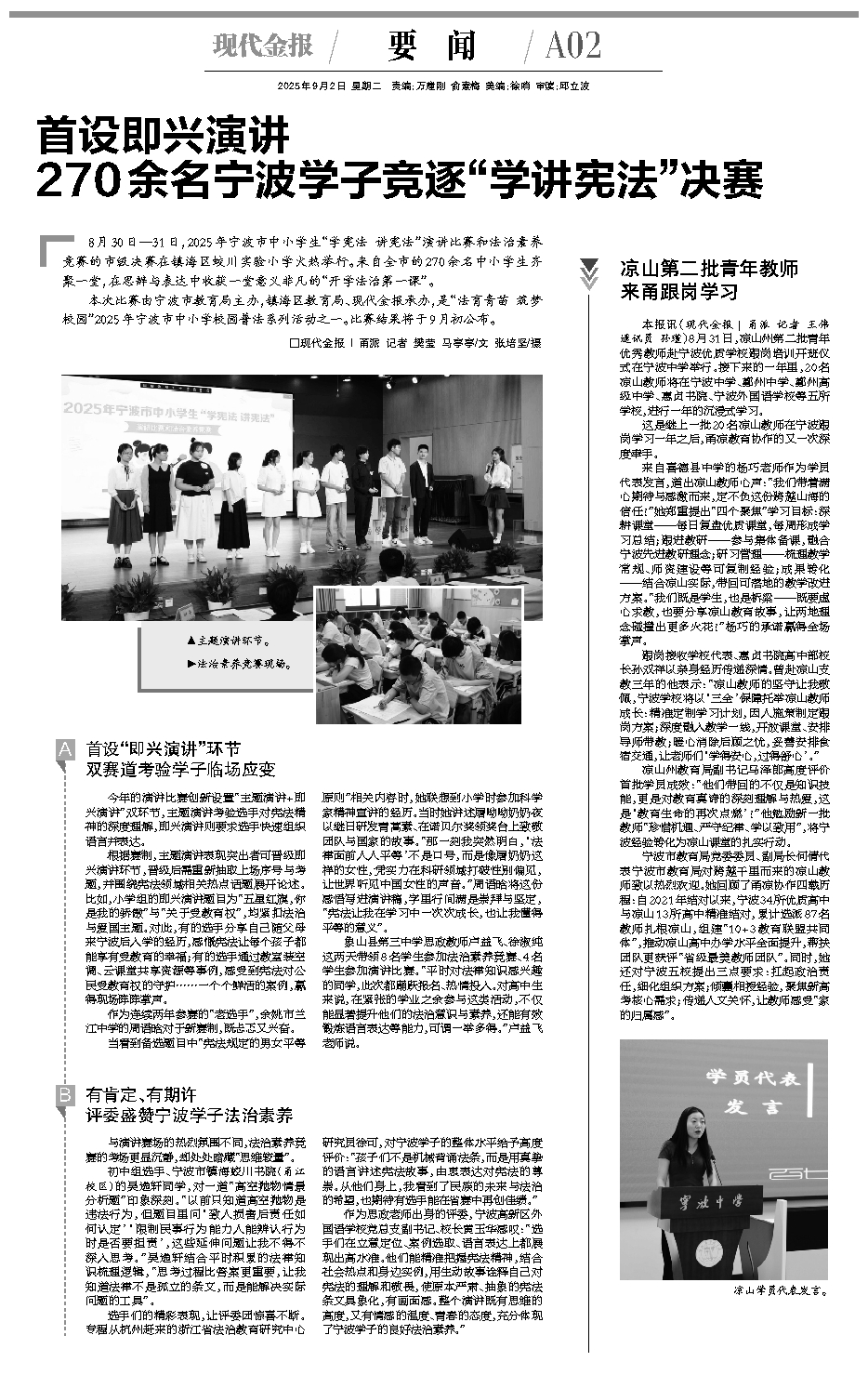 首设即兴演讲 270余名宁波学子竞逐“学讲宪法”决赛