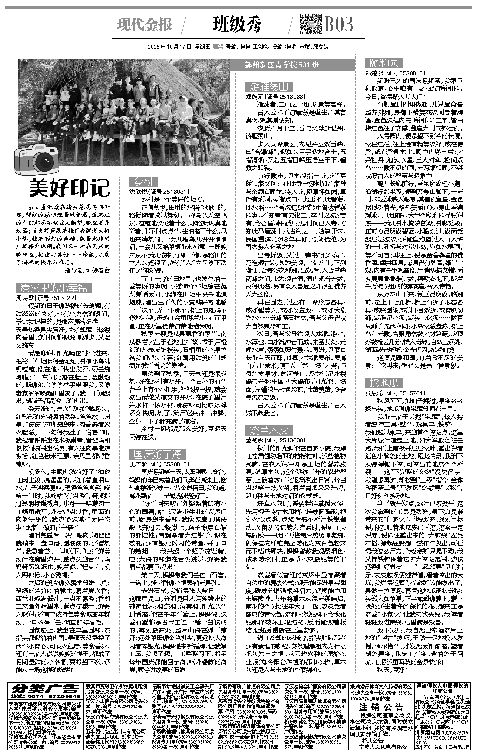 第B3版:班级秀