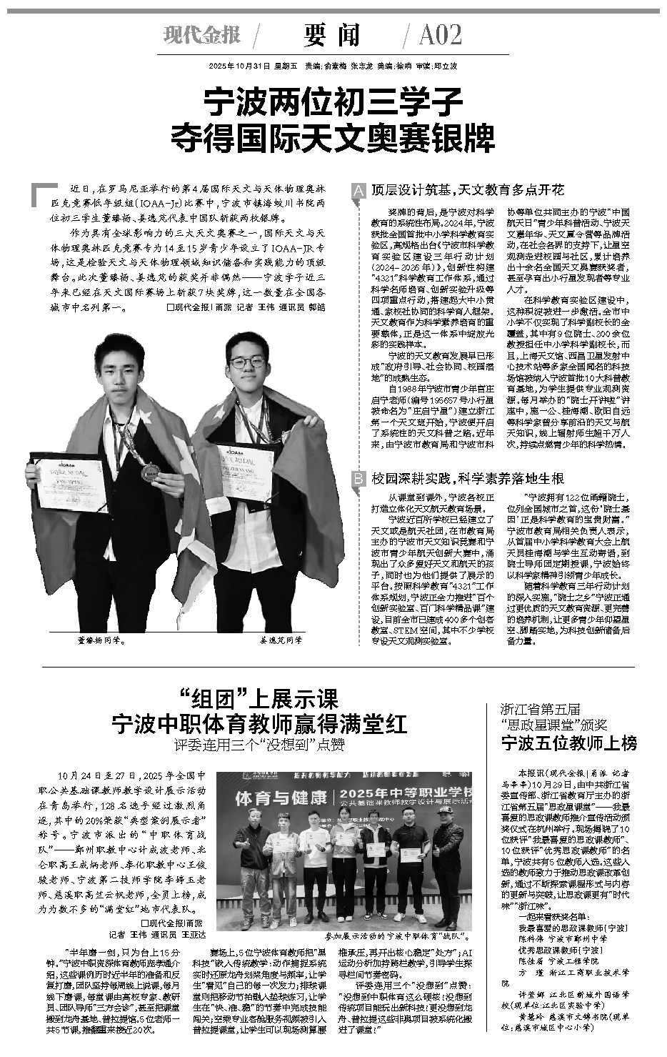 宁波两位初三学子 夺得国际天文奥赛银牌
