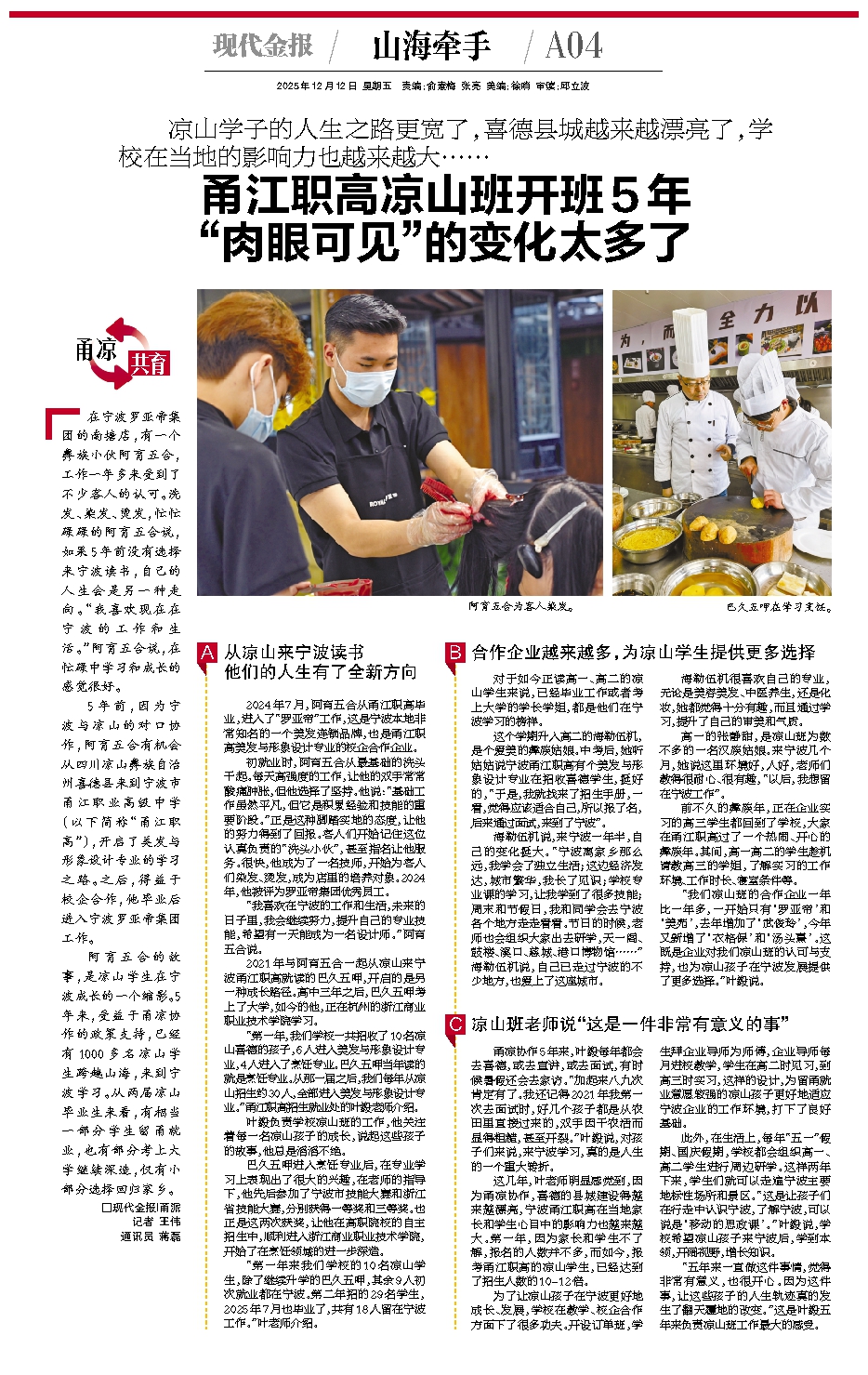 甬江职高凉山班开班5年 “肉眼可见”的变化太多了