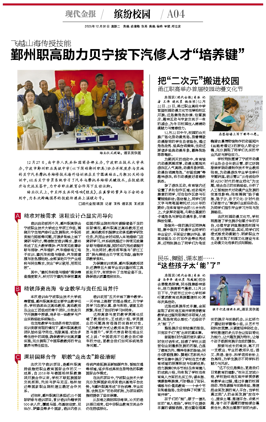 鄞州职高助力贝宁按下汽修人才“培养键”