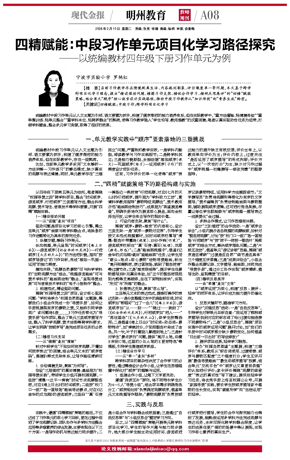 四精赋能:中段习作单元项目化学习路径探究