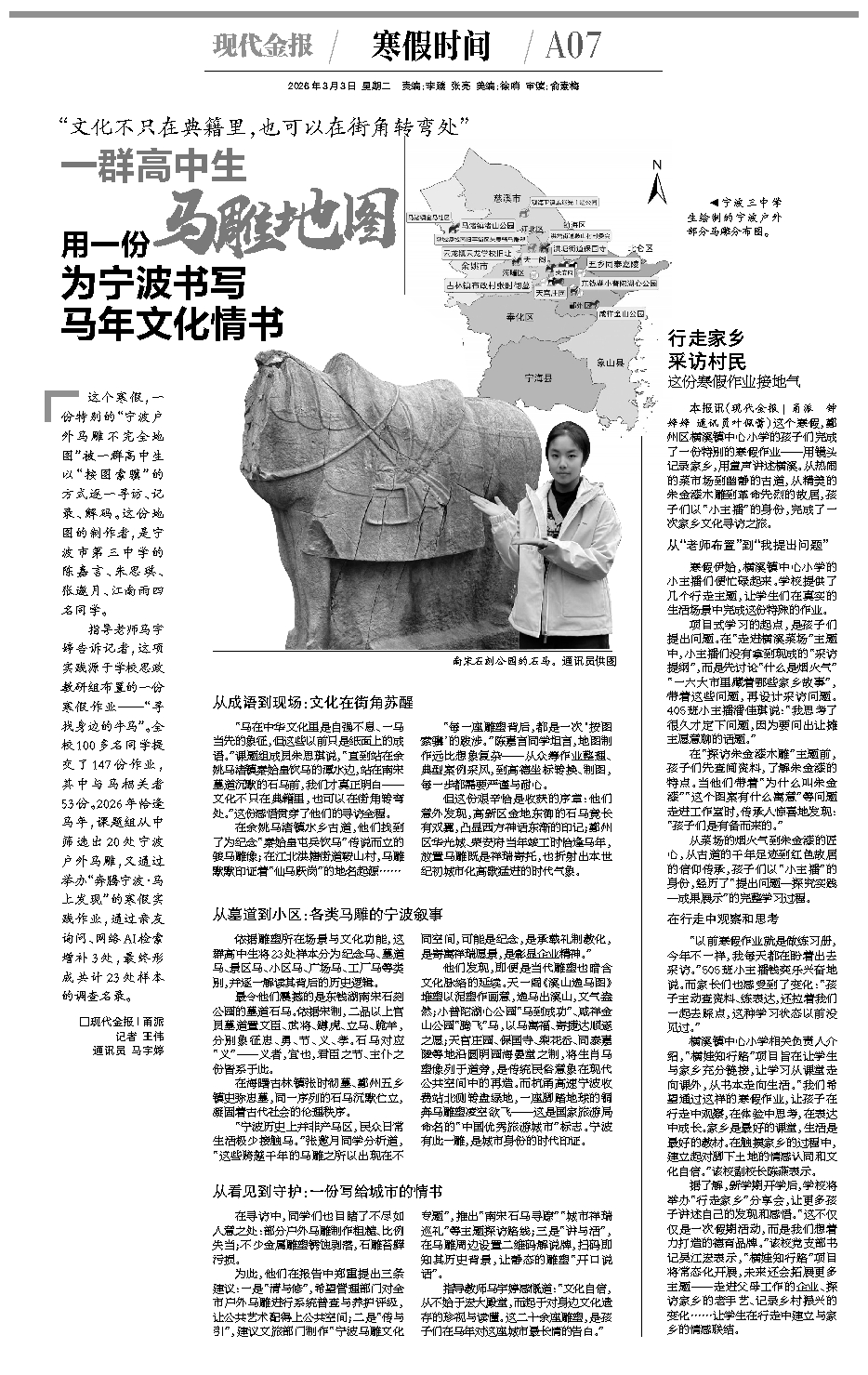 一群高中生用一份马雕地图为宁波书写马年文化情书